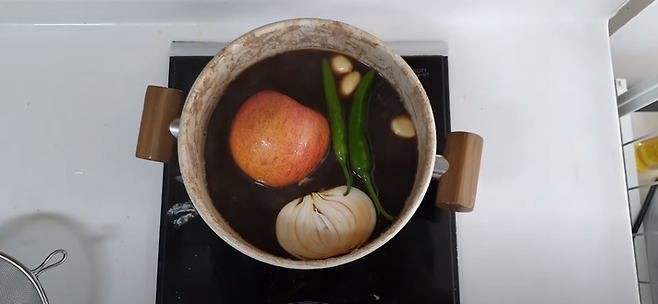 이렇게만 해도 맛있고 활용도 높은 만능 간장이지만, 몇 가지를 더 추가하면 간장 맛을 더 풍부하게 만들어 줄 수 있어요. 바로 양파, 고추, 사과, 마늘인데요. 이들을 추가한 간장은 더 깊고 새콤달콤한 맛을 낸답니다. 간장을 끓이고 다시 한번 체에 걸러주셔도 돼요. •̀ᴗ•́