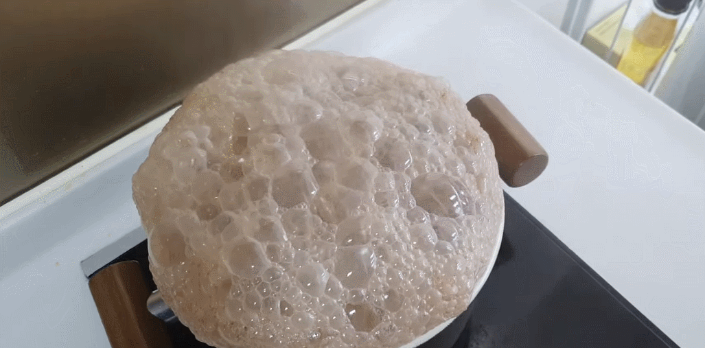 간장을 끓일 때는 펄펄 끓는 순간에서 1분 정도 더 끓여주시면 되는데요. 이때 생기는 거품은 불순물이기 때문에 걷어주세요! 이렇게 하면 남은 간장의 불순물을 제거하고 간장을 소독해서 더 오래 보관할 수 있게 해줘요. (。☌ᴗ☌。)♡