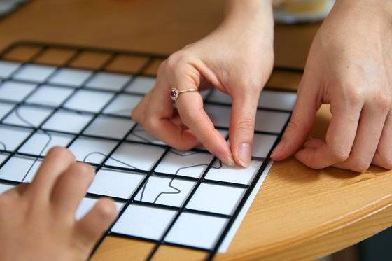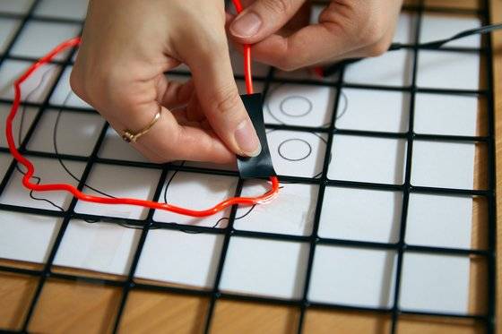 민아 학생기자가 네온사인의 기본 틀이 되는 네트·아크릴판을 가리키며 “두 재료가 어떻게 다른지” 물었습니다. “만드는 데 큰 차이는 없고, 네온관을 고정하는 방법이 달라요. 아크릴판은 구멍이 없고 표면이 매끄럽다 보니 본드를 이용하고요. 네트는 아주 얇은 철사로 네온관을 묶어 고정하죠. 각 재료 모두 장단점이 있는데, 아무래도 본드는 언제 떨어질지 모르기 때문에 고정력 면에서는 네트가 조금 더 우수해요. 반면 아크릴판은 특유의 투명한 느낌 덕에 네트에 비해 깔끔해 보이죠. 여러분처럼 네온사인 공예에 처음 도전하는 친구들에게는 고정이 한결 쉬운 네트를 추천한답니다.”