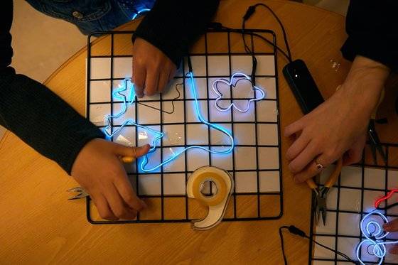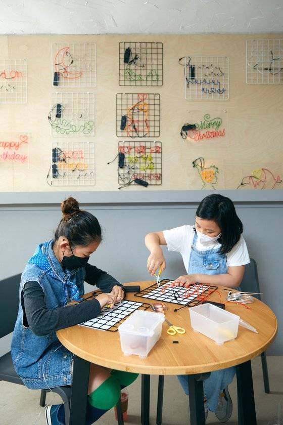 “네온사인 공예라고 하면 복잡하고 어려운 형태를 떠올리곤 하는데, 우리 공방을 찾는 손님 중 상당수가 여러분 같은 청소년이에요. 도안에 따라 얼마든지 난이도를 조절할 수 있기 때문에 남녀노소 불문하고 즐기기 좋죠. 특히 코로나19 유행이 장기화하며 셀프 인테리어에 대한 관심이 높아졌고, 네온을 이용한 인테리어 소품 공예가 대중화됐어요. 오늘은 네온사인 공예에 대해 알아본 뒤 각자 마음에 드는 도안을 바탕으로 네온사인 작품을 만들어볼 거예요.”