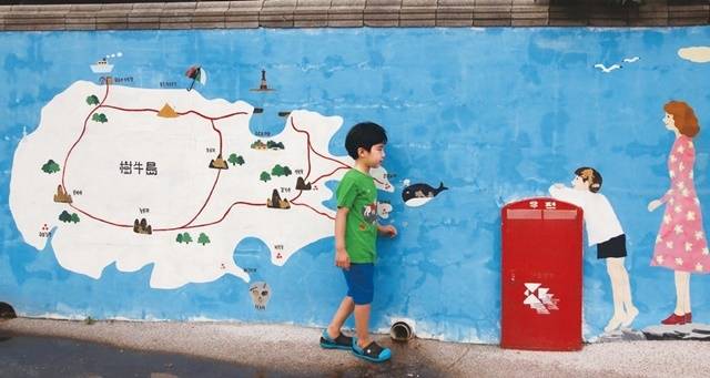 통영에서 3년 전 담에 그림을 그리는 봉사단이 와서 치장했다고 해요. 아이들이 없는 섬에 벽화로나마 귀여운 아이들이 골목을 뛰놀고 있었어요. 이제는 사라진 젊은이들이 벽화로나마 사랑을 속삭여요. 학생들이 없어 10년 전 폐교된 수우초등학교는 관광객을 위한 숙소로 개조했어요.