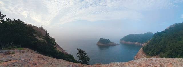 오후엔 산행에 나섰어요. 20분 정도 가파른 길을 올라가자 고래바위가 나타났죠. 고래바위에 서면 비취색 바다와 건너편 사량도가 한눈에 들어와요. 이어지는 신선봉의 아슬아슬한 낭떠러지에 서면, 어디선가 구름을 타고 신선이 나타날 것 같아요.