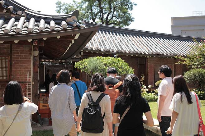 광화문광장 역사물길에 줄지어 선