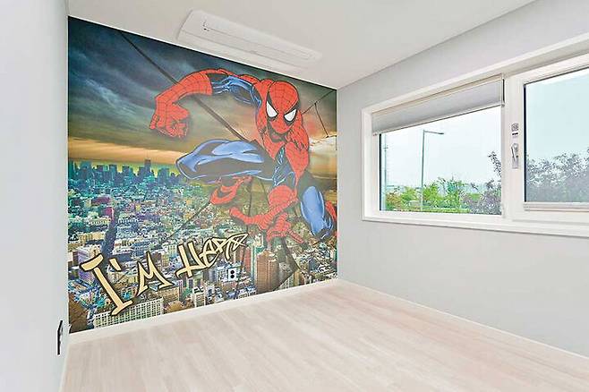 벽은 아이들의 취향을 담은 뮤럴 벽지를 적용하고, 거울 붙박이장을 설치해 공간이 넓어 보이도록 했다.