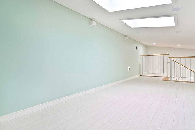 취미 공간으로 활용 예정으로, 파스텔 그린 벽지를 사용해 생동감 있는 공간으로 완성했다.