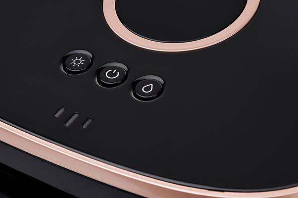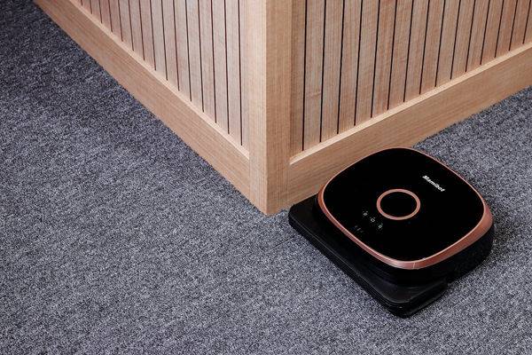 마미봇 로봇청소기의 심플함은 비단 슬림하고 콤팩트함으로부터 오는 것만이 아니다. 고급스러운 유광 블랙 색상에 로즈 골드 포인트가 조잡하지 않게 디자인되어있어, 로봇청소기만의 투박함이 덜하다는 것이 마미봇 로봇청소기의 장점이다. 특히 마미봇은 전체적으로 사각형에 가까운 형태지만 로즈 골드 포인트가 원 형태로 주변을 둘러싸고 있어 전반적으로 부드러운 느낌을 준다. 여기에 마미봇 로고와 상태 표시등, 그리고 단 3개의 버튼 만이 마미봇 로봇청소기 레이아웃의 전부다. 말 그대로 군더더기 없는 디자인이라 할 수 있다. 참고로 포인트 색상은 로즈 골드 외에 실버 색상도 있다.
