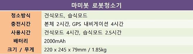 게다가 마미봇 로봇청소기에는 GPS 내비게이션이 함께 제공된다. 약 7m의 공간 인식이 가능한 GPS 내비게이션을 높은 곳에 올려두는 것만으로 마미봇 로봇청소기가 스스로 청소할 위치를 매핑할 수 있다. GPS 내비게이션이 공중에 빛을 쏘아 올려 반사시키는 방식으로 마미봇 로봇청소기가 집안 구조와 장애물 위치를 알 수 있게 도와주는 것인데, 이를 통해 청소가 반복될수록 마미봇 로봇청소기의 학습량이 많아져 청소의 속도와 완벽도가 점점 높아진다. 마치 인공지능을 품은 듯한 모습이다.