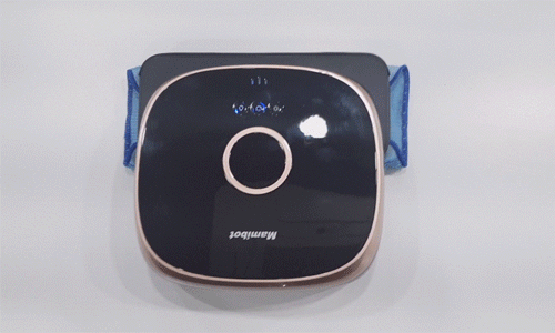 버튼을 누르자마자 마미봇 로봇청소기가 ‘Y’자 모양을 그리면서 왔다 갔다를 반복한다. 닦인 바닥을 보면 물기가 적당한 수준으로 묻어 있고, 심지어 손으로 닦지 않으면 잘 지지 않을 것 같은 얼룩까지 잘 지워내는 모습이었다. 실제로 특수 내하중 설계 덕분에 걸레에 가해지는 압력이 센 편이며, 사람이 직접 손걸레질한 듯한 효과를 볼 수 있다고 한다.