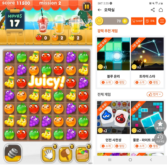 KT 또한 자사가 보유하고 있는 여러 플랫폼에 HTML5 게임 서비스를 도입 중이다. 자사 포인트 앱인 CLiP에서 게임들을 서비스하는 한편, 5G 기반 영상통화 앱인 ‘나를(narle)’에서도 여러 사용자가 동시에 즐길 수 있는 게임을 서비스하고 있다. 심지어 IPTV 올레에서도 플랫폼에 구애받지 않는 HTML5의 장점을 살려 서비스 중이다.