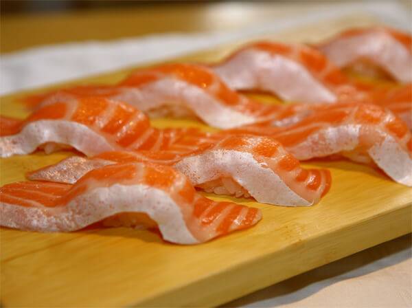 대만으로 여행을 가면 꼭 가봐야 할 맛집으로 삼미 식당을 많이 꼽는다. 이곳의 시그니처 메뉴라고 할 수 있는 대왕 연어 초밥은 일반적인 연어 초밥보다 압도적으로 훨씬 큰 사이즈를 자랑하는데 그 크기가 대략 3배 정도에 달해서 한입에 넣는 것은 무리, 반으로 잘라먹어야 한다. 물론 단순히 큰 사이즈로만 인기를 끈 것은 아니다. 삼미 식당 표 달짝지근한 특제소스를 연어 위에 발라 초밥을 만들기 때문에 별도 양념장을 사용하지 않아도 되고 감칠맛을 확 끌어올린다.