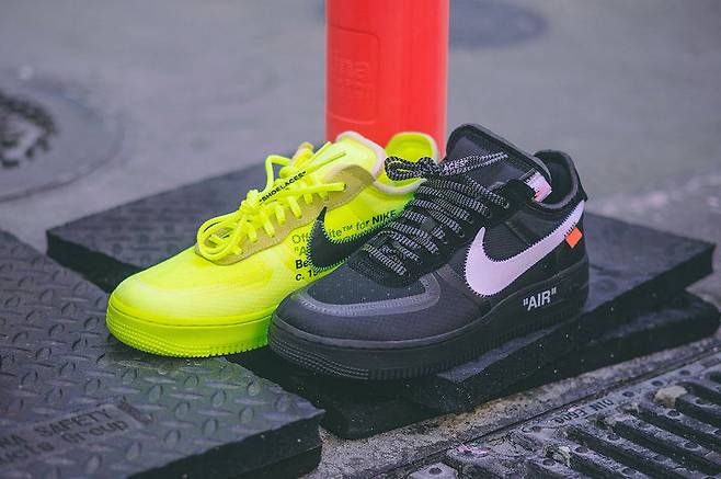 오프 화이트 x 나이키 에어 포스 1 로우 ‘블랙’ & ‘볼트’ 재발매