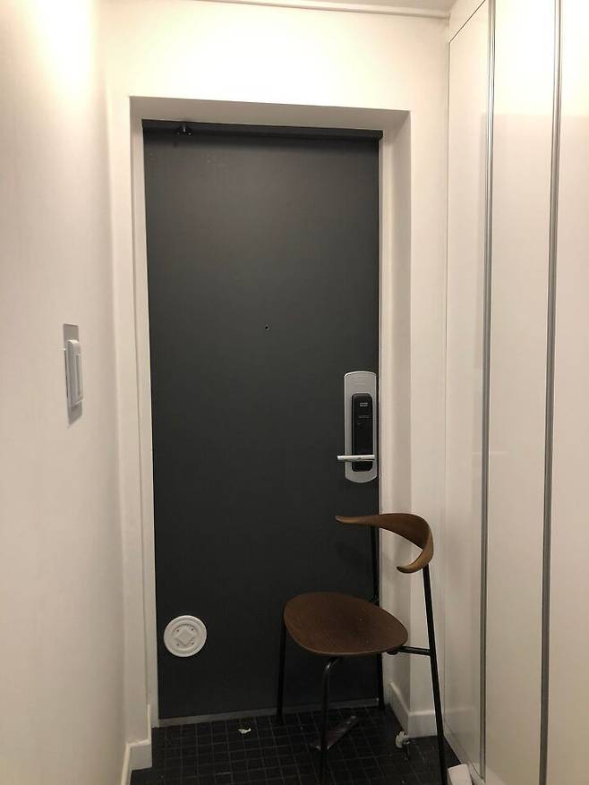 셀프로 진행한 현관이에요. 2년 전 화이트로 도장을 하기도 했고, 현관 필름 정도는 셀프로 많이 한다기에 인테리어 업체엔 현관 필름과 현관 타일 덧방은 셀프로 하기로 미리 공정을 빼두었어요.