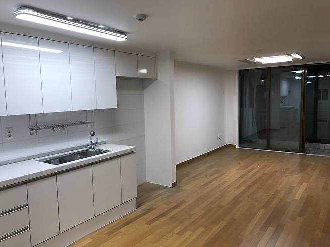 이건 비포 사진이에요. 한쪽 벽이 내력벽이라 완전히 철거하는 건 불가능했어요.