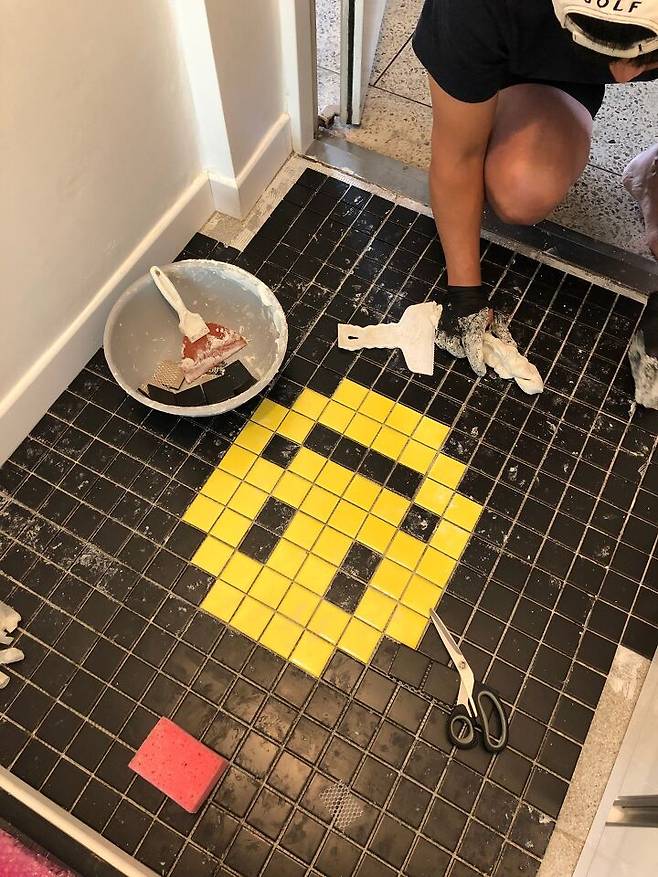 타일 셀프 시공! 지옥의 블랙 시멘트 지우기 작업. 타일만 3시간 닦고 걸레받이를 한 시간 닦은 거 같네요.