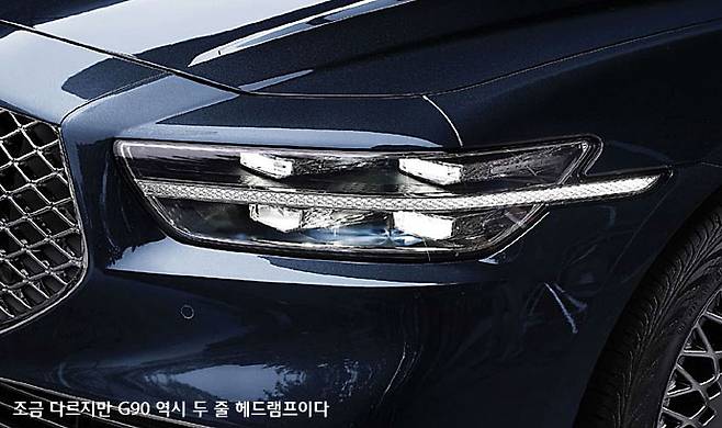 제네시스 브랜드의 차량들의 앞 모습도 진화되는 것 같다. 주된 요소는 물론 크레스트 그릴과 두 줄의 헤드램프인데, 초기 차량에서는 현대자동차 브랜드의 캐스캐이딩 그릴과 유사한 형태이기도 했다. 당연히 이런 그릴의 형태는 디자이너들의 조형작업의 비중이 절대적으로 크지만, 아이덴티티 구축의 논리를 구성하는 것도 중요하다. 두 줄 헤드램프와 크레스트 그릴을 주요 요소로 놓고 이것을 논리 항으로 구성해보도록 하자. 먼저 몇 가지 용어를 정의하면 이와 같다.