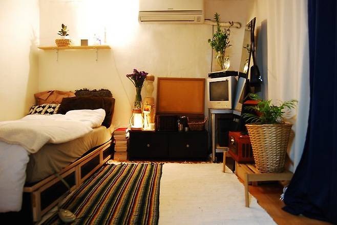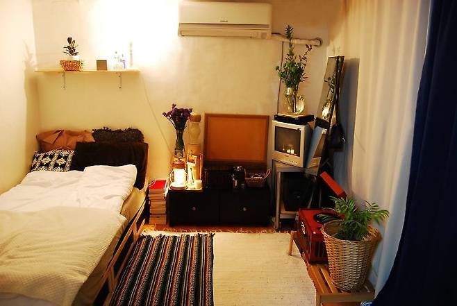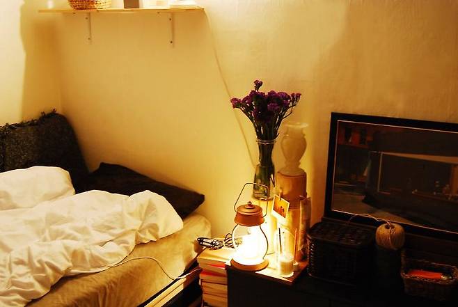 제가 살고 있는 이 곳은 10평 내외의 분리형 원룸 형태 옥탑방이에요. 따뜻하고 아늑한 느낌의 안식을 줄 수 있는 공간으로 꾸미고 싶었어요. 조금씩 셀프로 인테리어 하면서 지금의 모습을 완성했답니다.