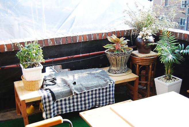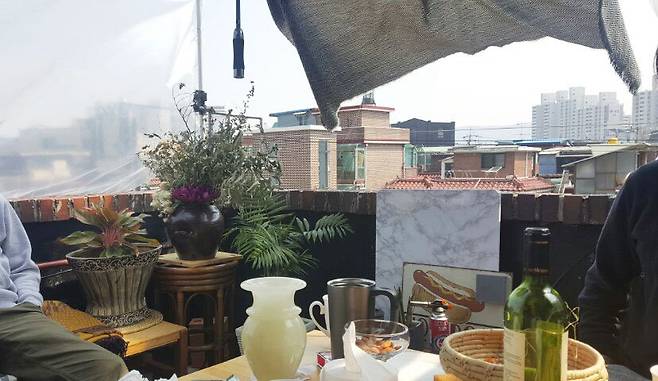 날씨가 좋은 날에 친구들이 놀러 오면 테라스에서 커피를 마시곤 해요. 하루종일 음악을 들으면서 커피만 마셔도 행복한 낭만 옥탑입니다.