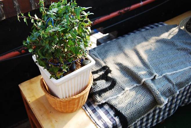 테라스로 향하는 문을 열고 이곳을 보면 그냥 기분이 좋아지곤 합니다. 특히 날씨가 화장한 날엔 더욱더 이뻐 보이는 녀석들이에요. 바로 옆에 기찻길이 있는데요. 전철이 지나다니는 소리를 듣는 것도 이곳에서는 낭만적이에요.