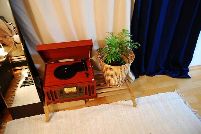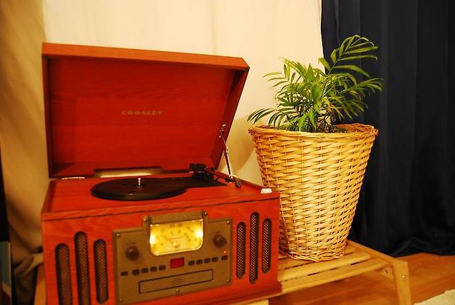 집에 작은 TV가 있지만 저는 주로 집에서 음악을 듣거나 라디오를 듣는 편인데요. LP 듣는 것도 좋아해 그날의 기분에 따라 LP를 켜 놓기도 하고요. 턴테이블은 일부러 집 분위기와 맞는 제 취향의 클래식한 디자인으로 샀는데 너무너무 맘에 들어요. 바라만 봐도 좋아지는 우리 집 최고의 핫 스팟 입니다.