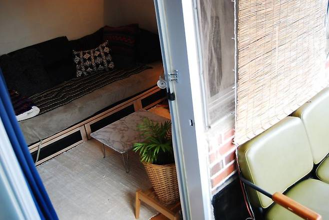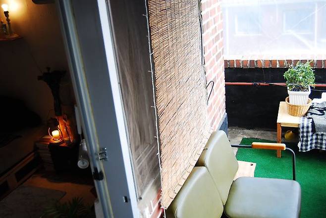 창가에 대나무 발을 설치해 은은하게 햇빛이 들어오도록 했어요. 저희 집 옥탑과 잘 어울려 아주 만족스러워요.