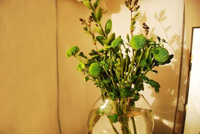 봄을 맞아 초록 초록한 식물들과 그린소국을 꽂아 TV 위에 놓아두었어요. 집안에서도 봄이 왔다는 걸 느낄 수 있어 아주 행복하답니다. 나만의 공간을 위해 행하는 이 작은 행동들이 저에게는 너무나 소중하고 특별한 행복으로 다가와요.