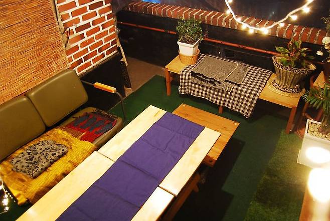 옥탑에 밤이 찾아오면 낭만은 더욱 극대화되는데요. 벤치에 앉으면 야경과 달을 볼 수 있어요. 가끔 지나다니는 전철들도 너무나 운치 있고요.