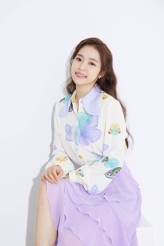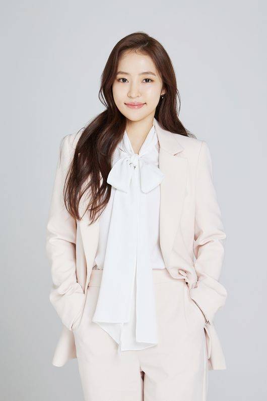 사진 속 홍자는 파스텔 톤의 수트 스타일링으로 지적이면서 세련된 모습을 뽐내고 있다.