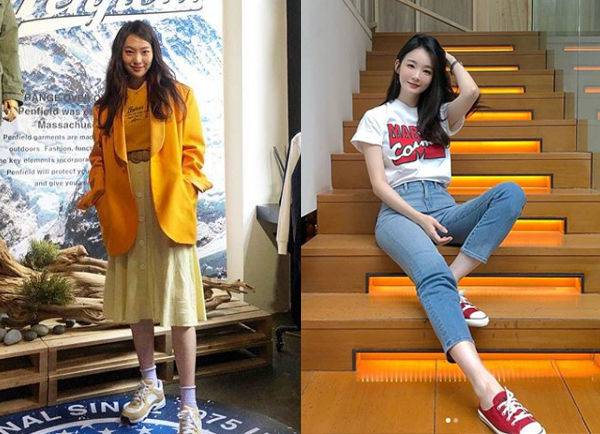 같은 예로 김보라도 티셔츠와 슈즈의 컬러를 함께 매치했어~ 이때 김보라는 컬러감이 확 튀는 숄더백으로 산뜻한 분위기를 더욱 상승 시켰지! 뭔가 편안하면서도 패셔너블한 감각이 돋보이는 것이 딱 꾸안꾸 패션인 것 같아ㅎㅎ