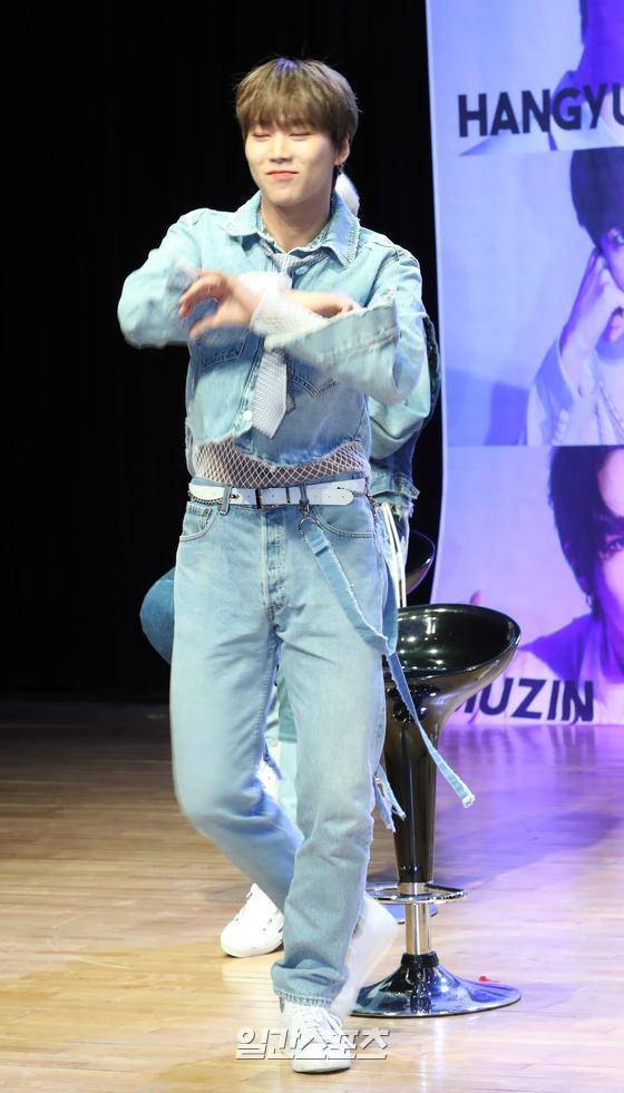 BAE173(이한결, 제이민, 유준, 준서, 무진, 영서, 남도현, 빛, 도하) 멤버 준서가 포인트안무를 선보이고 있다.