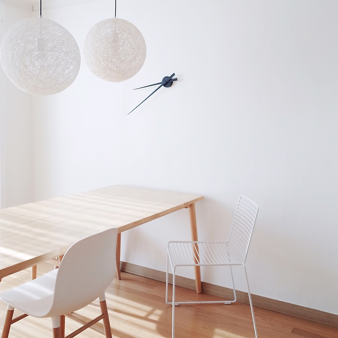 단 두 개의 가구와 예쁜 조명으로만 스타일링 된 거실은 18평의 작은 아파트였지만 충분히 넓은 공간이었습니다.