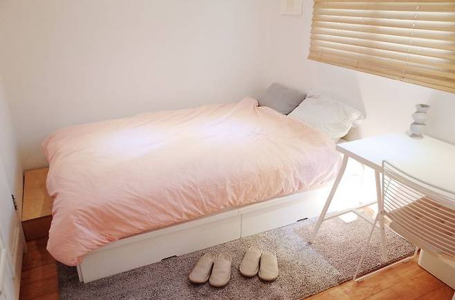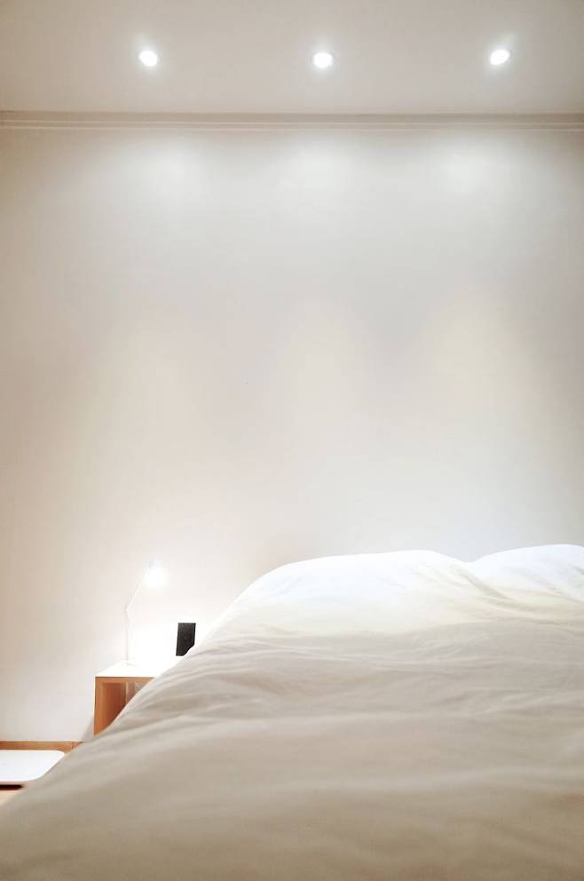 호텔 하면 가장 먼저 깔끔한 새 하얀 침구가 떠오르듯 최대한 심플하면서 밝은 침구를 강조한 스타일링을 해보았습니다. 그리고 하나의 미니 협탁 위 단 하나의 조명만으로 공간에 개성을 더했습니다.