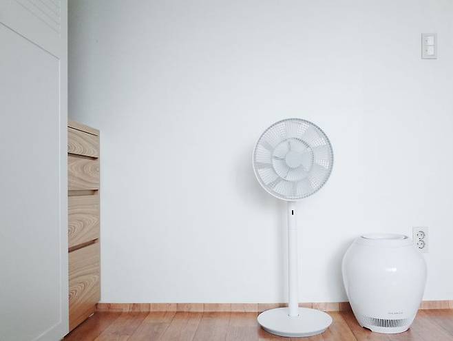 침실의 습도를 조절해줄 가습기도 튀지 않는 화이트 색상으로 안방 한 공간에 놓아두었습니다.