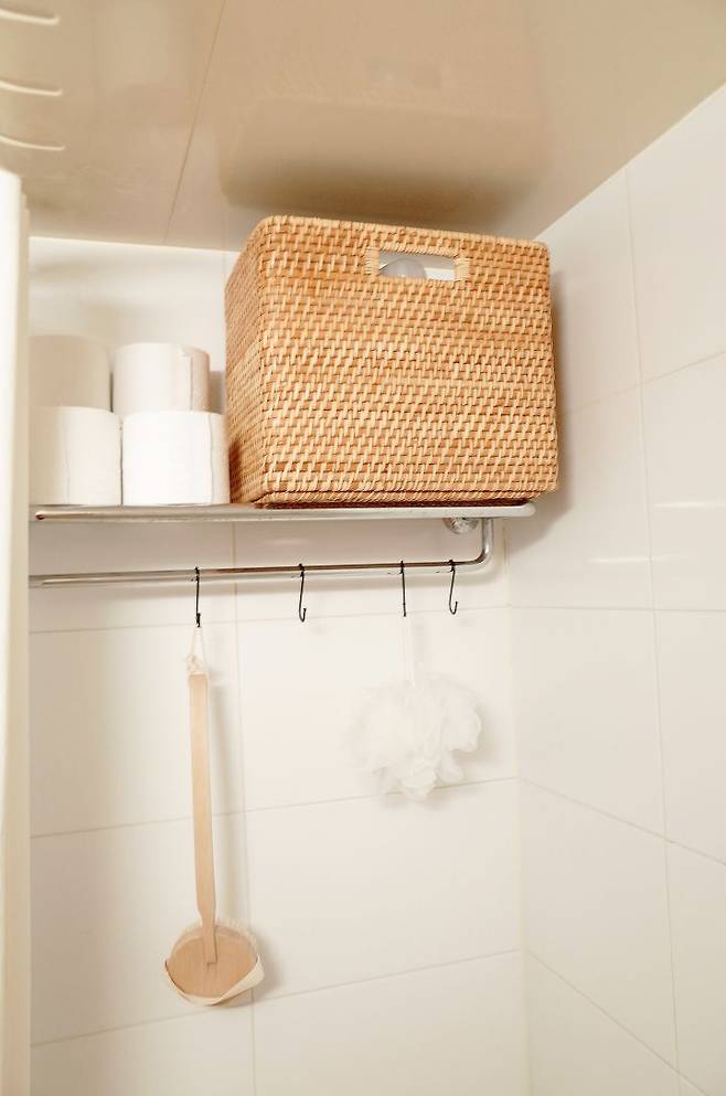 선반 : 스트링포켓 / 벽거울 : 이케아 / 라탄바구니 : 한샘