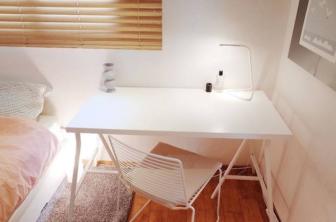 친정과 시댁 부모님께서 오시면 편히 쉬실 수 있게 꾸민 손님방입니다. 원래는 옷으로 가득 찬 옷 방이었는데 공간 다이어트를 단행하니 손님을 위한 공간으로 만들 수 있었어요! 평상시에는 저만의 작업공간으로 활용하고 있습니다.