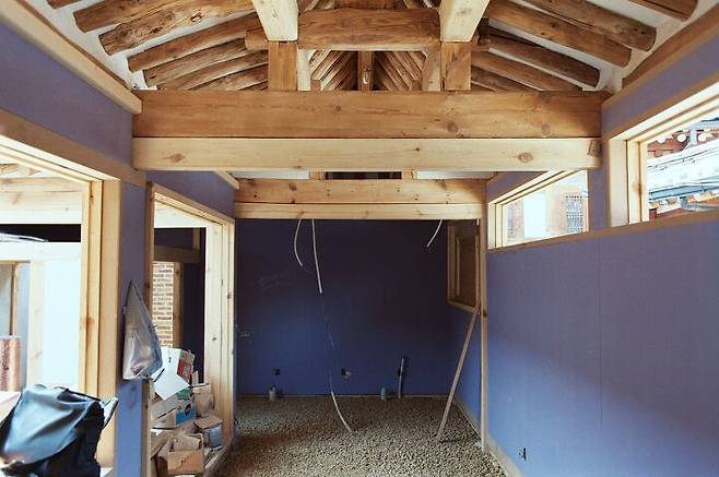 저는 낡은 한옥에서의 불편함을 너무도 잘 알았기에 집의 중심이 되는 골조와 주거조건에 직접적인 영향을 주는 단열 및 설비시설을 완전히 새롭게 하고 싶었어요. 그래서 살릴 수 있는 기둥을 제외하고 전면 철거를 시작했습니다.