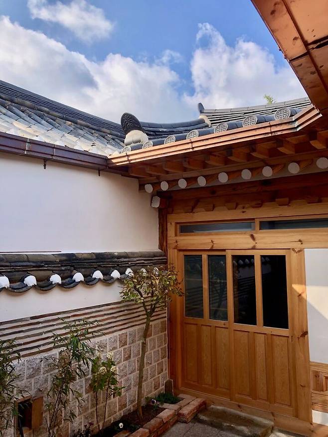마당에는 공사 후 남은 벽돌을 쌓아 화단을 만들고 작은 나무와 꽃들을 심어봤어요. 아무래도 한옥은 아파트의 편리함에 비하면 불편한 것들이 있어요. 하지만 하늘이 보인다는 것에 만족하고 따뜻한 나무의 기운을 가까이에서 느낄 수 있다는 것에 감사하게 생각하고 있습니다.