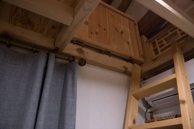 저의 침실로 가는 비상구예요. 침실은 여기까지만 보여드릴게요. 개인적인 공간이라 부끄럽네요.
