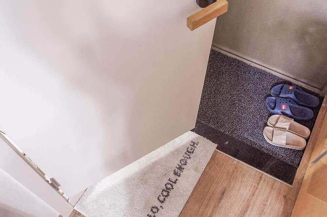 원목손잡이 : 작은집닷컴 직지원목손잡이 / 발매트 : 쿨이너프스튜디오 THE MAT SQUARE / 현관매트 : 작은집닷컴 DIY 홈매트/현관매트/베란다매트