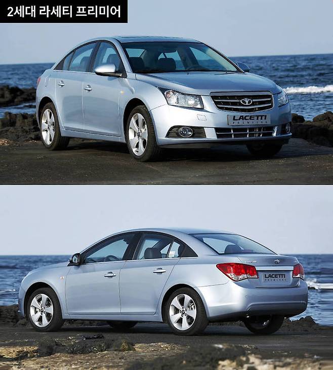 라세티 출시 6년 후, GM대우는 풀체인지 된 2세대 라세티를 공개합니다. 2세대 라세티는 서브네임이 더해져 ‘라세티 프리미어’라는 모델명으로 출시되었는데 (일명 ‘라프’), 전작에 비해 훨씬 더 세련된 디자인이 돋보인 풀체인지 모델이었습니다.