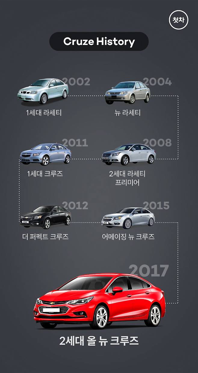 기억하시겠지만 크루즈의 전신은 2002년 GM대우가 출시한 라세티입니다. 2010년대 초반까지만 해도 라세티라는 모델명을 그대로 유지했지만, GM대우가 한국GM으로 사명을 바꾸면서 판매 브랜드를 쉐보레로 전면 교체하는 일이 있었는데요. 이때 라세티 역시 해외에서 쓰이던 ‘쉐보레 크루즈’라는 모델명으로 통일되었습니다. 그리고 이번에 발표된 2세대 크루즈까지 동일한 모델명을 사용하며 국내 준중형급 세단 세그먼트에서 꾸준한 인기를 얻고 있죠.