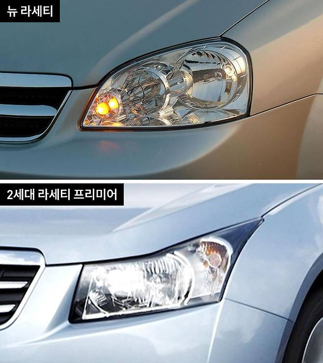 라세티 시절 가장 호평받는 전조등은 아무래도 라세티 프리미어의 날카로움으로 무장한 전조등이 아닐까 싶습니다. 뉴 라세티 시절까지만 해도 큰 특색이 없었던 전조등이 라세티 프리미어로 넘어오면서 디자인적으로 많은 변화가 있었기 때문인데요. 휀더를 감싸듯 날카롭게 뻗은 디자인이 지금 보아도 세련되었죠?