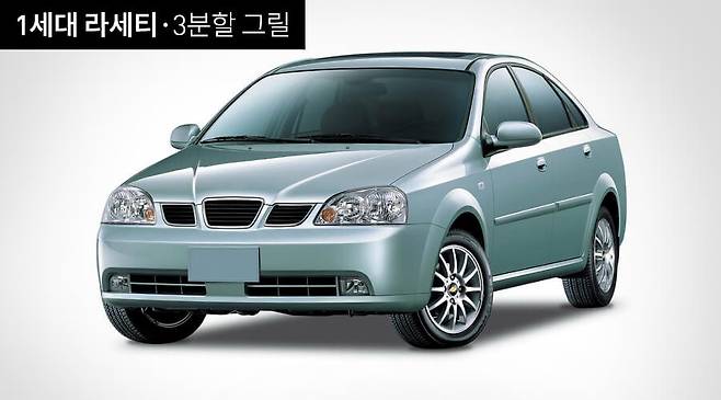 최초 1세대 라세티는 대우자동차의 특징 중 하나인 3분할 그릴을 그대로 계승한 전면부를 가지고 있었습니다. 요새는 잘 볼 수 없지만, 당시만 해도 대우자동차 출신의 매그너스, 레조 등은 3분할 그릴을 그대로 유지하고 있다는 특징이 있었는데요. 하지만 아쉽게도 이 3분할 그릴은 1세대 라세티 이후로 크루즈 디자인 역사에서 다시는 찾을 수 없게 되었습니다.