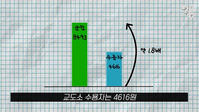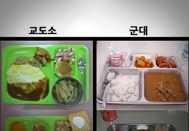 정부가 책정한 급식비에도 군대와 교도소 사이엔 현격한 차이가 있다.