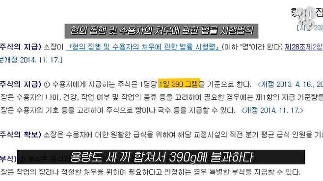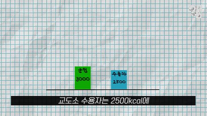 군대 같은 경우엔 여유분을 만들어서 하잖아요. 교도소에서는 배고파도 못 먹어요. 죽지 않을 정도?