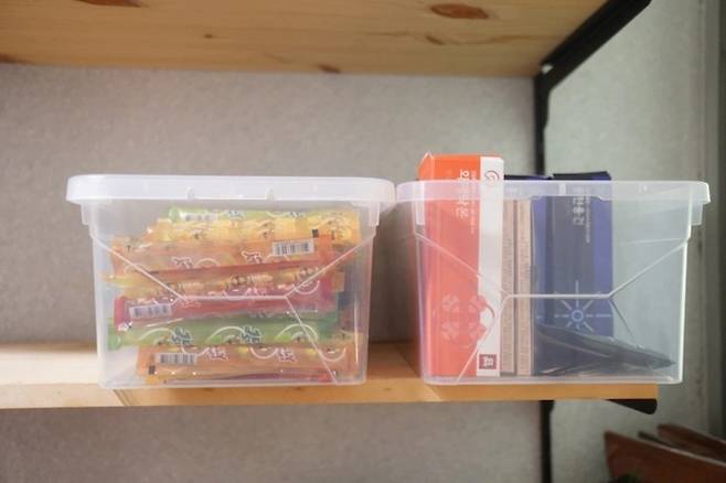 안에 있는 물건이 다 드러나지 않아서 깔끔하면서도 수납력도 좋으니, 이런 의외의 아이템을 활용해보셔도 좋을 것 같아요!