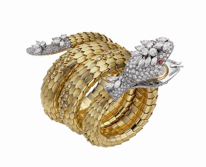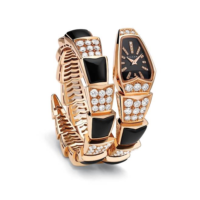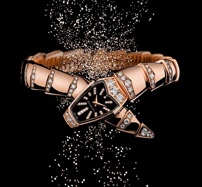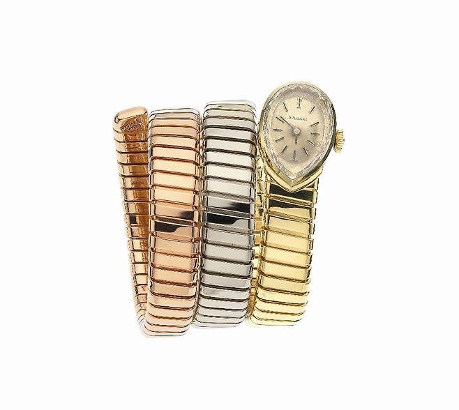 1940년대 후반 투보가스(Tubogas, 가스 튜브 형태에서 착안해 탄생한 독특한 와인딩 튜브 디자인)와 골드 메시를 활용해 뱀을 형상화한 브레이슬릿을 처음 선보인 불가리는 이후 1960년대에 좀 더 사실적으로 뱀을 형상화한 제품을 선보였습니다. 1962년 영화 <클레오파트라>에서 엘리자베스 테일러가 착용한 '스네이크' 모델 역시 큰 반향을 일으켰는데, 뱀의 눈을 에메랄드로 머리 부분은 다이아몬드로 장식해 우아하면서도 강렬한 느낌을 선사했습니다. 특히 '뚜껑'을 닫으면 주얼리로, 그리고 뚜껑을 열면 시간을 확인할 수 있는 '2-in-1'이라는 점도 매력적이었습니다.