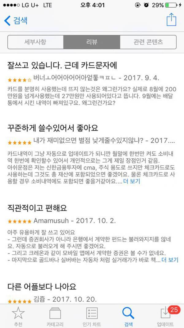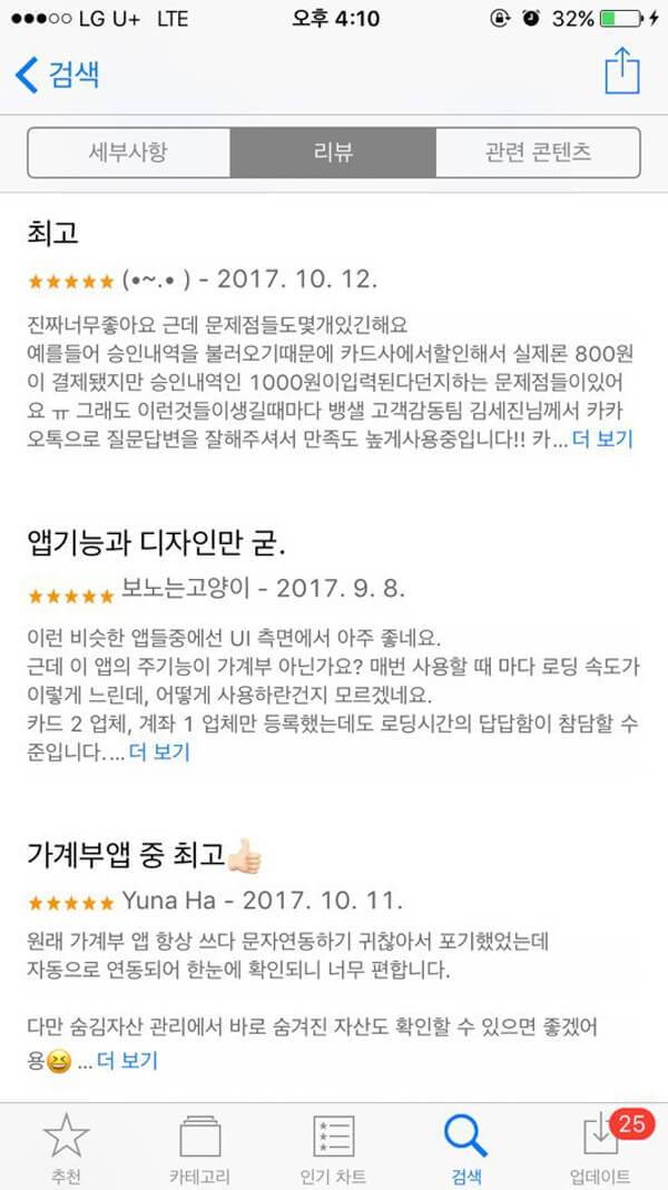 사용자의 평가는 언제나 냉정하다. 사소한 이유로도 별점을 깎는 경우가 허다하기 때문에 평점 4점대만 기록해도 긍정적으로 평가할 수 있다. 또한 별점을 일부러 남기는 사용자는 극소수이기 때문에 점수 못지않게 평가한 사용자의 수 역시 중요한 부분이다.