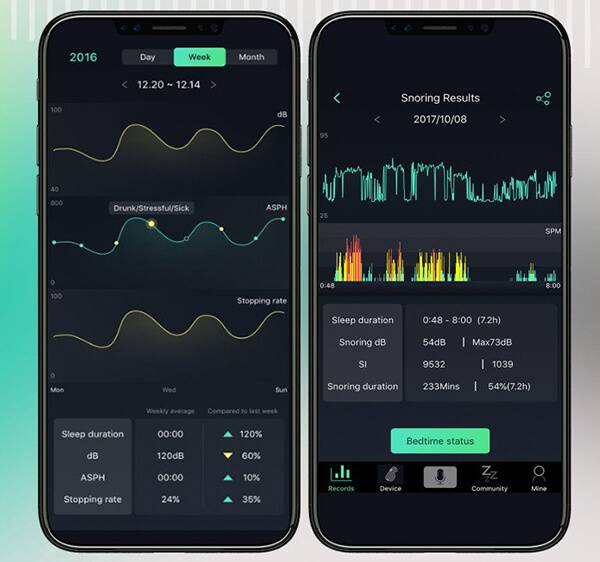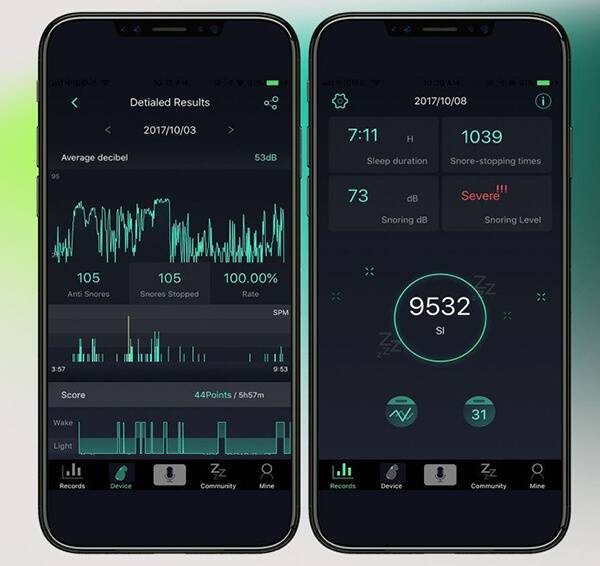 스노어 서클이 스마트한 이유가 하나 더 있다. 바로 블루투스와 연결하면 내 코골이 습관을 앱으로 확인할 수 있기 때문이다. 잠자는 시간 동안 얼마나 많은 코골이가 있었는지 알려주는 것은 기본이다. 내 코골이를 스노어 서클이 얼마나 많이 멈추도록 도와줬는지, 실제로 성공했는지 등을 파악할 수 있다. 게다가 내 코골이 소리 크기는 물론 그 정도가 어느 정도인지도 스마트하게 알려준다.
