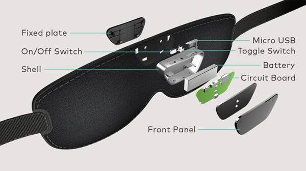 안쪽을 봐도 눈에 닿지 않으면서도 주변 불빛을 완벽하게 막아줄 수 있는 인체공학적인 디자인에 사용자에게 최적의 착용감을 제공할 수 있도록 끈 길이까지 조절할 수 있도록 했다. 여기서 스노어 서클의 특이한 점을 골라보자면, 일반 안대에서는 필요가 없는 것이 하나 있다는 것이다. 바로 미간 쪽에 아주 작은 장치가 달려있다는 것인데, 툭 튀어나와 있어 어떤 역할을 하는 장치인지 궁금증을 유발한다.