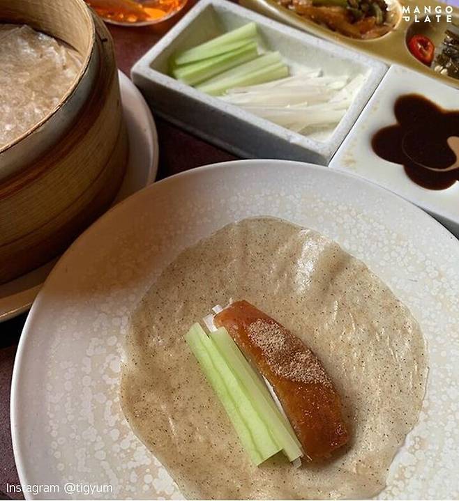 대표 메뉴인 베이징덕은 눈 앞에서 셰프님이 슥삭슥삭 손질을 해주시는데요. 얇고 바삭한 껍질 따로, 촉촉하고 부드러운 살코기는 밀전병에 채소를 넣고 춘장을 찍어서 먹어보세요!